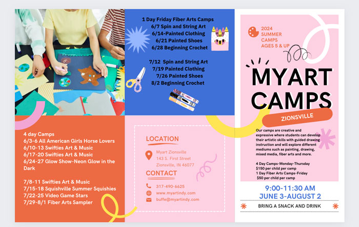 Myart camps are full of fun and creativity! Campers draw, paint and
